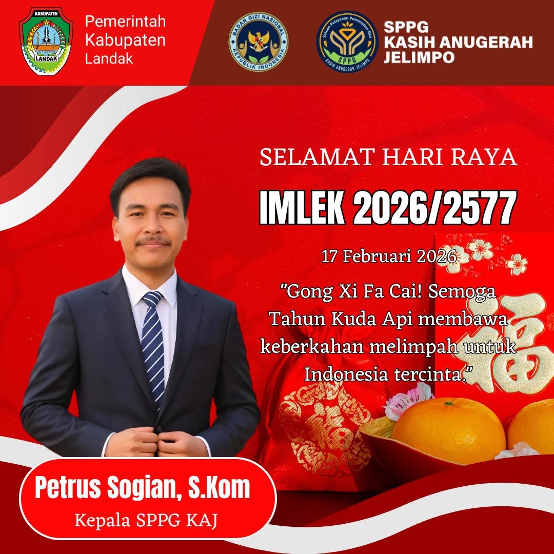 SPPG Kasih Anugerah Jelimpo mengucapkan Selamat Tahun Baru Imlek 2026, Tahun Kuda Api 2577 Kongzili, kepada seluruh masyarakat yang merayakan. Semoga tahun yang penuh semangat, keberanian, dan energi pembaruan ini membawa harapan baru, kebahagiaan, serta kesuksesan dalam setiap langkah kehidupan.